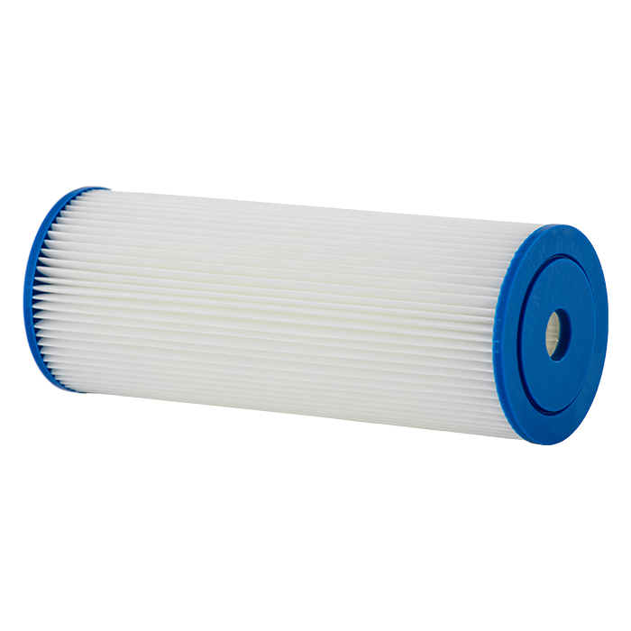 Filtro tipo cartucho sedimentador plisado para la reducción de sedimentos en el agua.