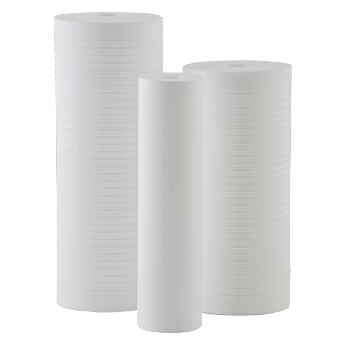 Filtro tipo cartucho sedimentador plisado para la reducción de sedimentos en el agua.