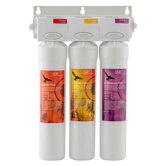 Sistema de ultrafiltración residencial "bajo tarja" además de proveer agua purificada, elimina cloro, sedimentos y microorganismos, elimina virus y bacterias que se encuentran en el agua, a través, de la tecnología de filtración más avanzada con el excepcional rendimiento de nuestro diseño de tres etapas.